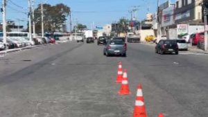 Na manhã desta segunda-feira (8), um caminhão carregado com contêineres causou um acidente na Avenida...