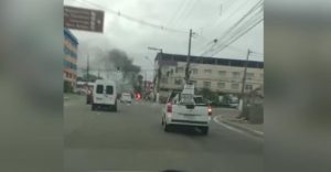 Um incêndio em uma Kombi está causando transtornos no trânsito da avenida Norte Sul, próximo...
