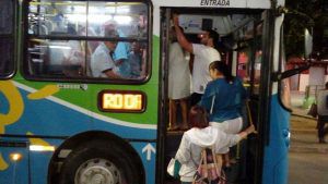 A primeira viagem da linha 888 do Transcol, entre Timbuí e Terminal de Laranjeiras, via...