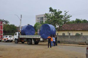 Quarenta e quatro reservatórios de 10 mil litros de água começam a chegar ao distrito...