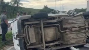 Uma tentativa de assalto terminou em acidente na Rodovia do Contorno (BR-101), na Serra, no...