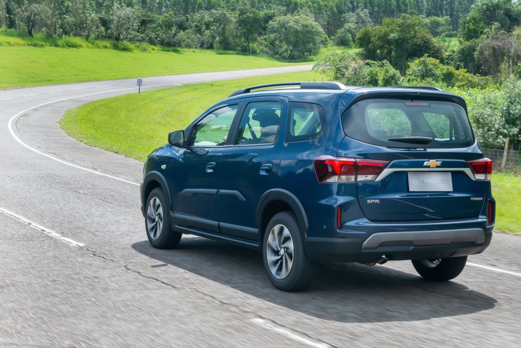 A Spin que testamos foi a Premier, versão topo de linha. Nela, a lista de equipamentos é bem mais recheada, com terceira fileira de bancos, ar-condicionado digital, partida por botão, sensor de chuva, sensor crepuscular, sensor de estacionamento, computador de bordo, câmera de ré, rodas de liga leve de 16 polegadas com acabamento diamantado, alerta de colisão, alerta de saída de faixa, alerta de ponto cego, frenagem automática de emergência, indicador de distância do carro à frente, carregador por indução e detalhes cromados na carroceria.