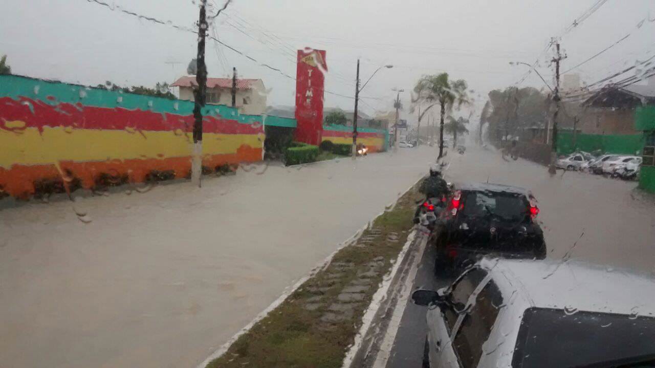 A Avenida Norte Sul que dá acesso a Laranjeiras está completamente alagada, vários carros estão presos em meio à grande quantidade de água.