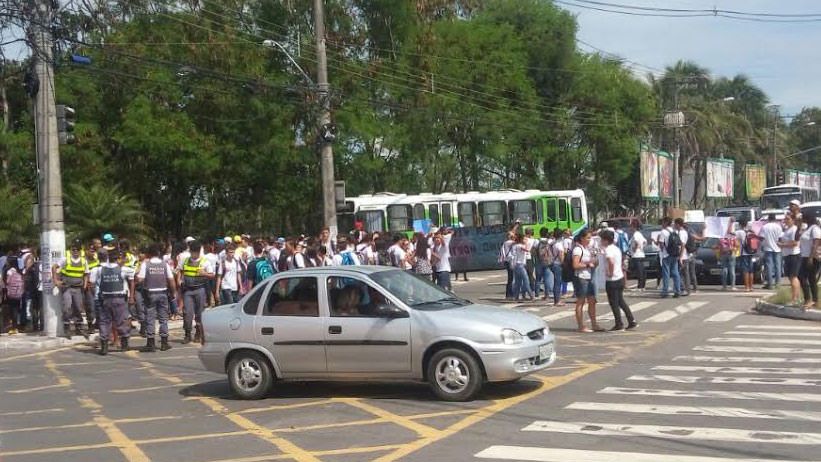 Ontem à tarde, no horário de pico, entre 18h e 19h, os motoristas foram pegos de surpresa com a interdição das vias pelos alunos, que deixou o trânsito caótico.