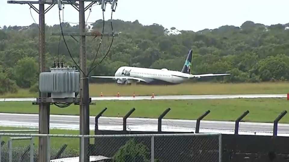 Um avião da Azul saiu da pista ao pousar na madrugada desta quarta-feira (10) no Aeroporto de Salvador (BA) e foi parar em uma área de segurança do local. Ninguém ficou ferido. A informação foi confirmada pela companhia aérea e pelo aeroporto.
