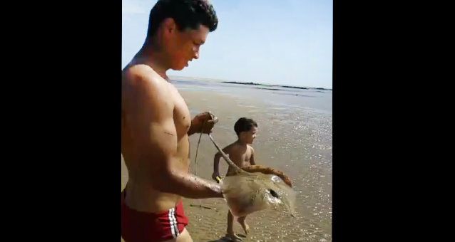 O vigilante Magno Fernandes conta que o resgate durou cerca de 40 minutos pois a pele do animal era muito escorregadia. “Estávamos num grupo de cinco adultos e duas crianças e foi uma das meninas que viu a arraia. Daí decidimos devolvê-la ao mar. Ela era pequena, tinha o tamanho de no máximo um prato”, afirma o morador de Nova Almeida.