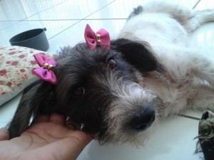 Belinha é uma menina muito esperta e sapequinha e mesmo tão pequenina já sofreu com a maldade humana. Foi abandonada na porta da protetora Edmaura Fonseca, em Jacaraípe, na Serra, juntamente com outra cadelinha.