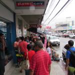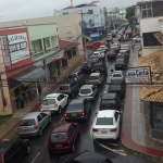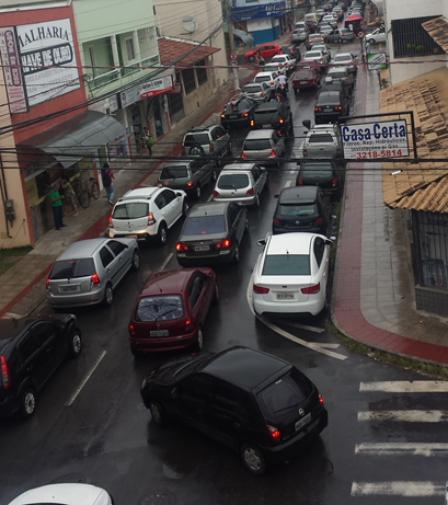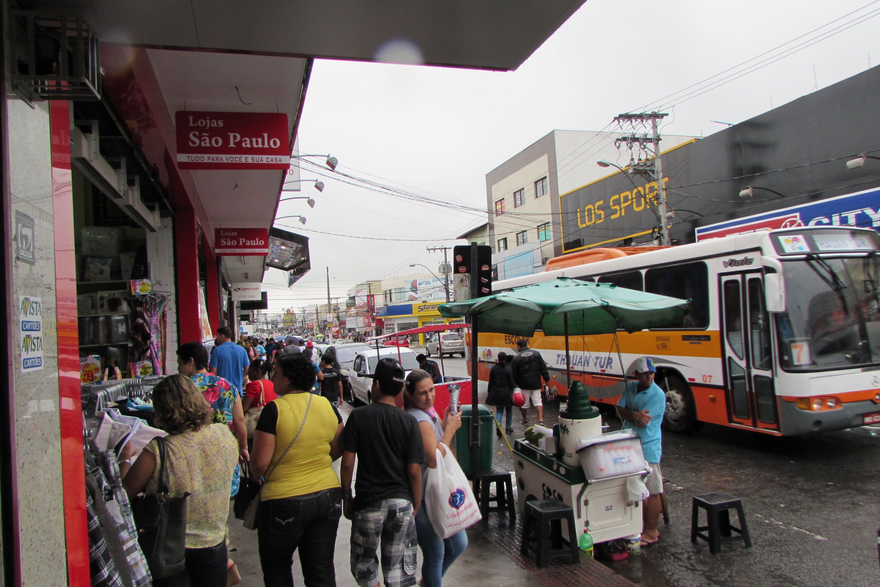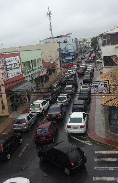 Na Avenida Central, o trânsito estava bem lento e conseguir uma vaga para estacionar era difícil. A chuva também atrapalhou o consumidor, mas não o impediu de realizar seus desejos de consumo.