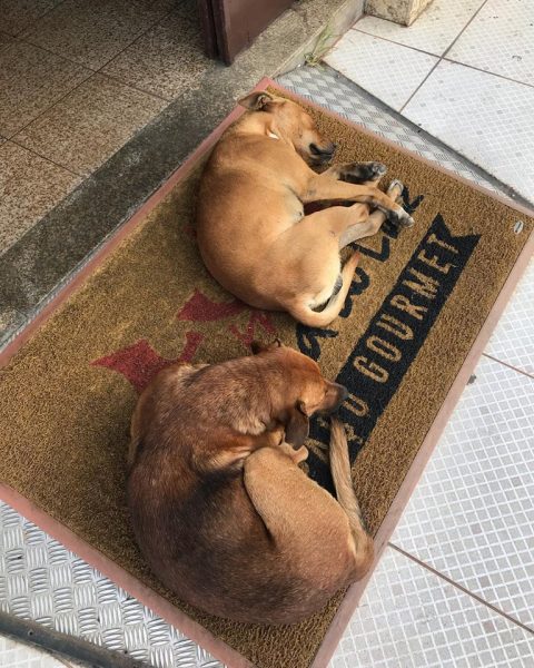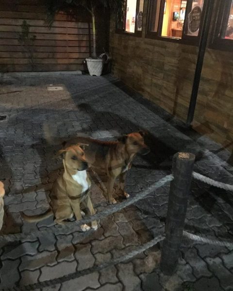 Jorginho e Jovem, que viveram por dois anos em frente ao restaurante, foram adotados pelo empresário. Os animais eram alimentados e interagiam com clientes e funcionários do local. “Neste período presenciei atropelamentos, maus-tratos, feridas de brigas pela rua. Já tive que correr com o Jorginho para a clínica veterinária, um problema que rendeu nada menos que 15 pontos na ‘fuça’. Mas também presenciei ambos defenderem o restaurante de invasões na madrugada, divertirem clientes com suas sonecas sem fim no tapete da entrada do salão e, claro né, o super carinho comigo ao ponto de chorar, gritar e fazer xixi todo dia quando chegava na Cabana”, conta Ricardo.