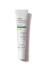O Gel Secativo Facial Antiacne Ácido Mandélico + Ácido Salicílico une a ação dos dois ácidos para desobstruir poros e, consequentemente, combater as inflamações. É um gel de rápida absorção, de uso localizado e acabamento invisível, com potente ação secativa e eficácia comprovada na redução do tamanho e vermelhidão da acne em até 8 horas. Também com indicação de aplicação localizada, o Gel Creme Uniformizador de Olheiras Mandélico + Tranexâmico atua na redução de bolsas e olheiras causadas pelo excesso da produção de melanina, reduzindo a aparência de olhos cansados e uniformizando a área ao redor dos olhos, com sensorial refrescante.