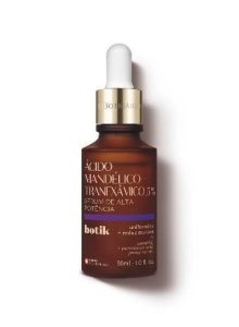 Para o lançamento, Botik apresenta como destaque da linha o Sérum de Alta Potência Ácido Mandélico 10% + Ácido Salicílico, um concentrado facial de uso diário com uma potente ação antioleosidade e antiacne. O produto possui uma combinação de ativos que garante 50% menos oleosidade e poros desobstruídos em quatro semanas. Além de prevenir o aparecimento, controla o brilho da pele sem gerar ressecamento e garante o viço natural. É um produto oil-free, de rápida absorção e com efeito mate.