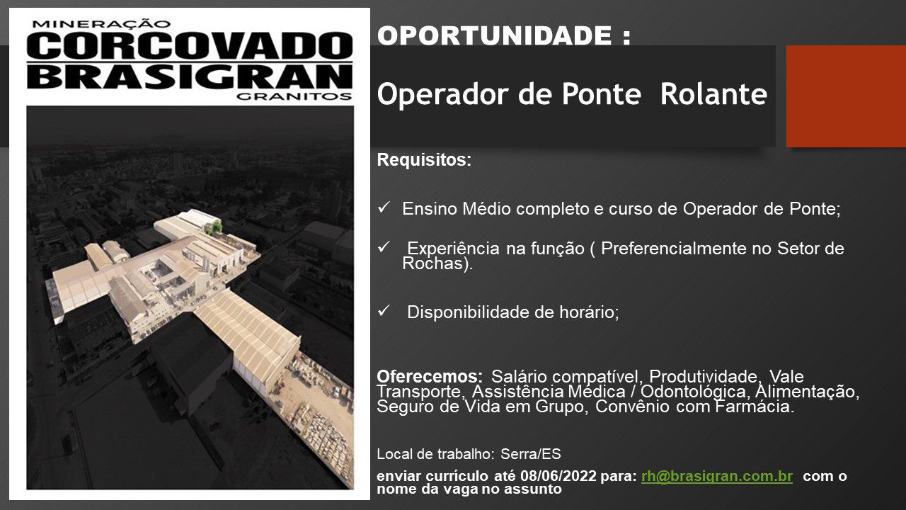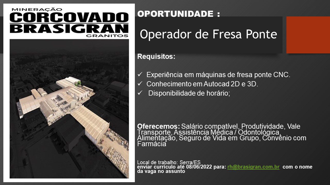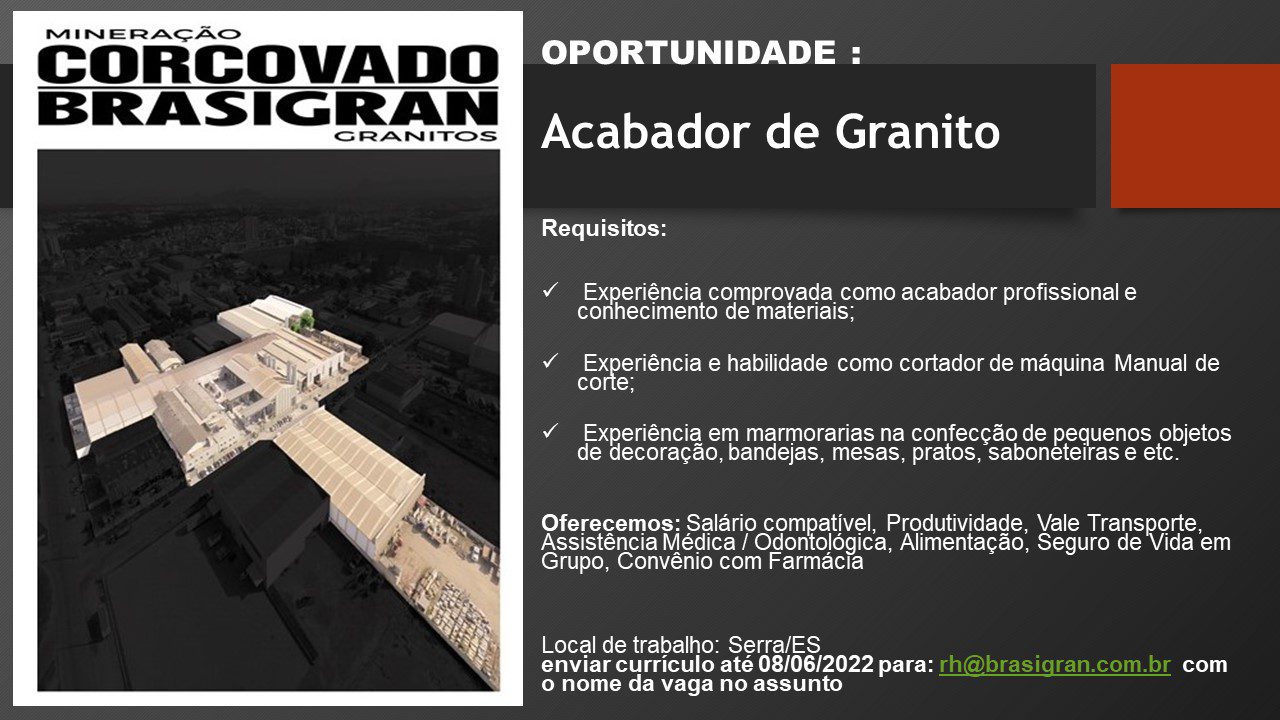Referência no mercado de granitos, a Brasigran abriu novas vagas de emprego para moradores da Serra e de outras cidades da Grande Vitória. As chances são para trabalhar na fábrica da empresa, que fica situada no Civit II– região industrial do município.