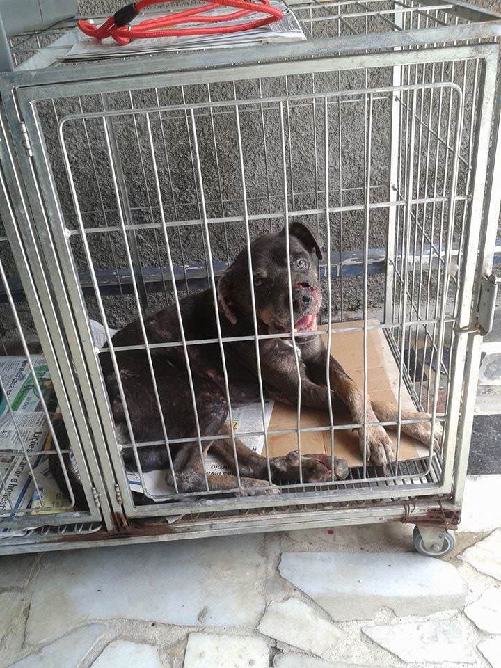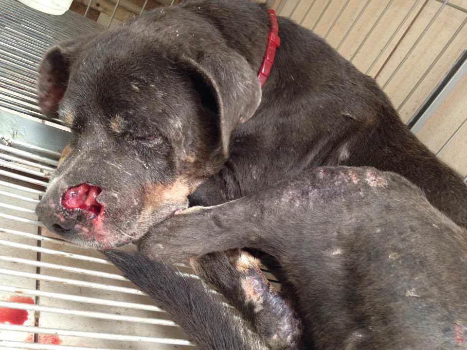 Herói estava repleto de miíase (bicheira) no nariz e em diversos outros locais do corpo, como dedos, pernas, rabo, orelhas e cabeça. Também está com doença do carrapato.