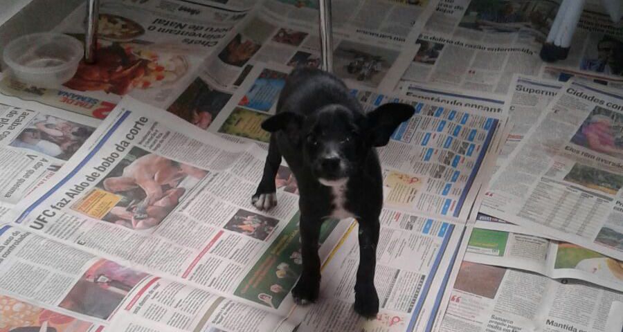 Esta cadelinha foi resgatada neste final de ano num rodovia muito movimentada, corria risco de ser atropelada. Ela está disponível para adoção, é porte médio, tem cerca de três meses e é muito mansinha.