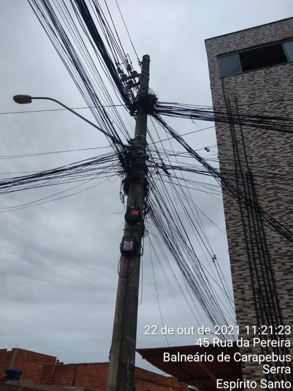 “Este é um assunto corriqueiro e sempre sem resolução, sobretudo pelo descaso de concessionárias de Serviços Públicos, em especial a EDP Escelsa. É desorganização de fiação nos postes de energia elétrica, assim como, fios caídos nas ruas, pendurados fora das especificações exigidas por lei, colocando em risco pedestres, ciclistas, motociclistas e a população em geral”.