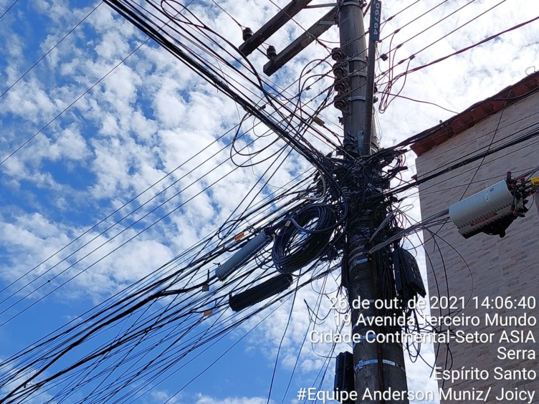 Quem anda pelas ruas da Serra já observou em algum ponto da cidade a quantidade de fios caídos de postes em vias públicas. Além de promover poluição visual, há ainda o problema dos fios que ficam pendurados e na maioria das vezes, é quase impossível saber quem é o dono da “bagunça”, se é a concessionária de energia elétrica ou as empresas de telefonia.