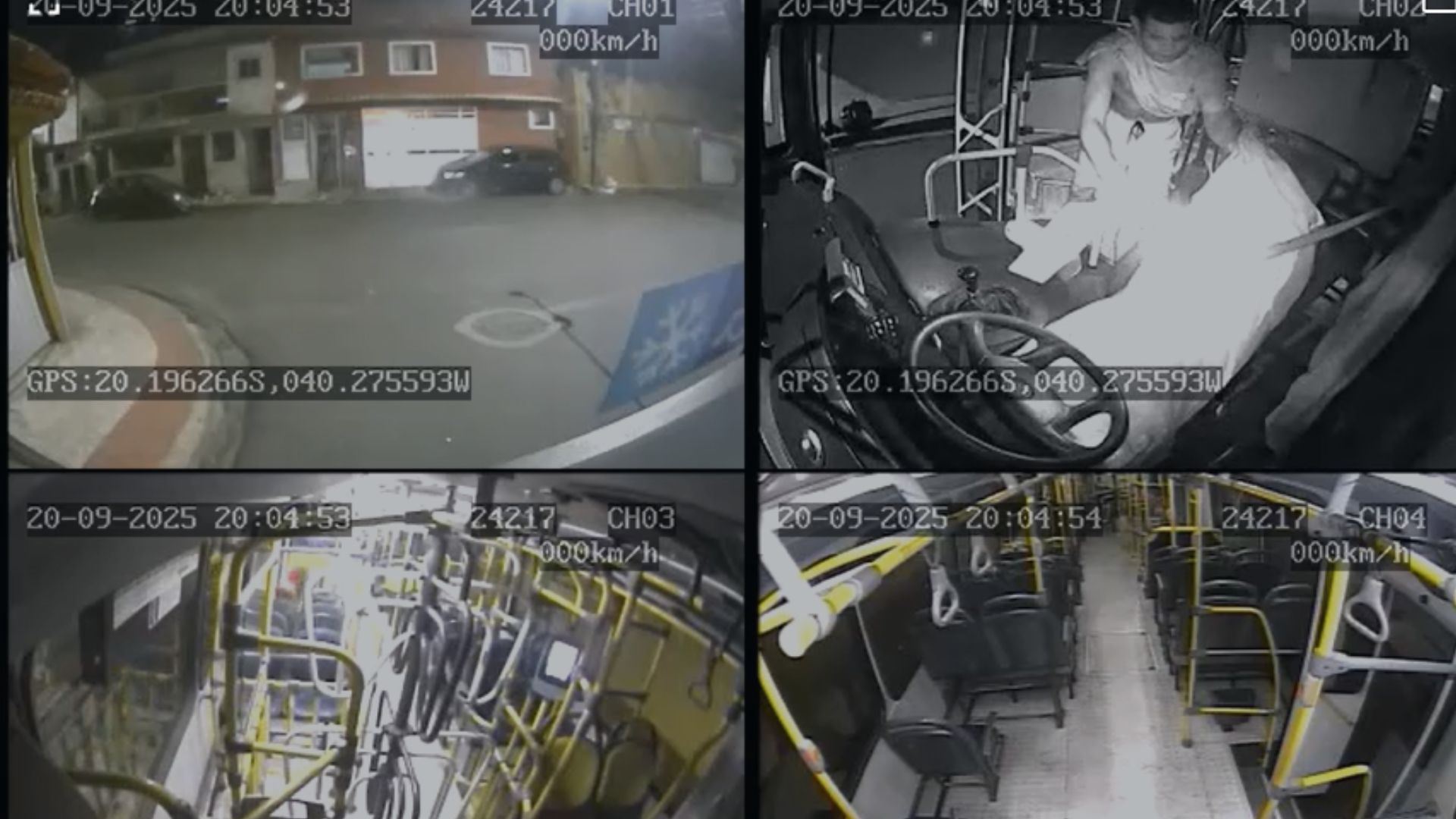 Em imagens é possível ver o momento em que os suspeitos cercam o coletivo, obrigam o motorista de onibus a descer e ateiam fogo no coletivo.