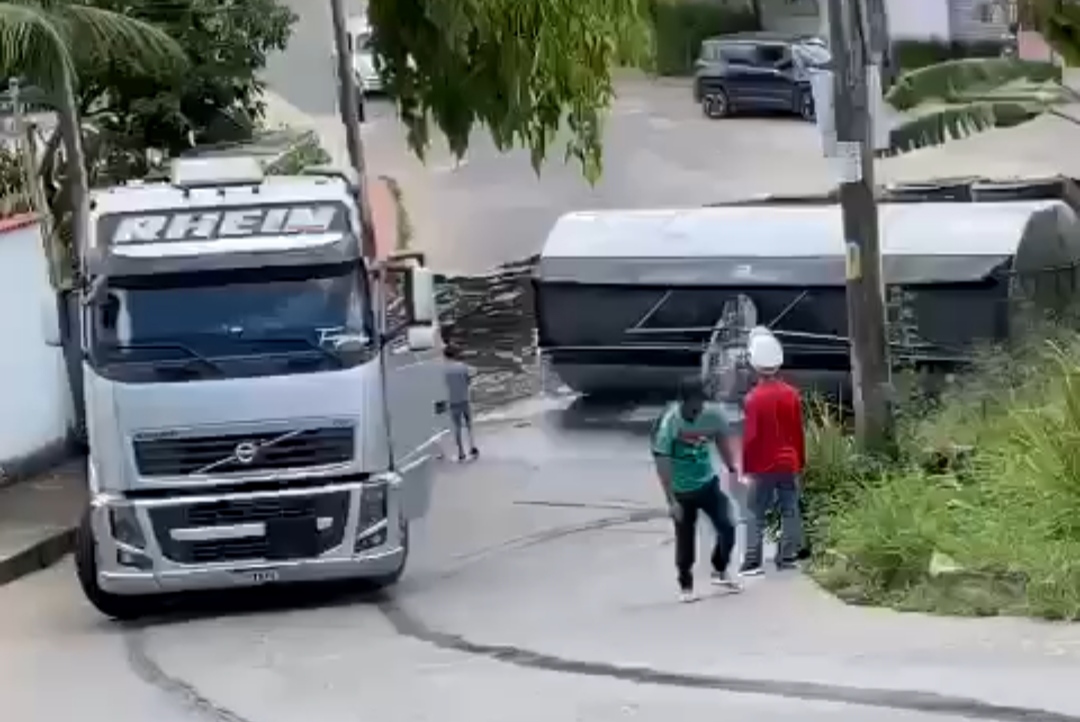 Um caminhão tanque que transportava matéria prima para fazer detergente tombou na subida do bairros Nova Carapina I e II, na Serra e a secretaria de Meio Ambiente do município e o Corpo de Bombeiros precisou ser acionada.
