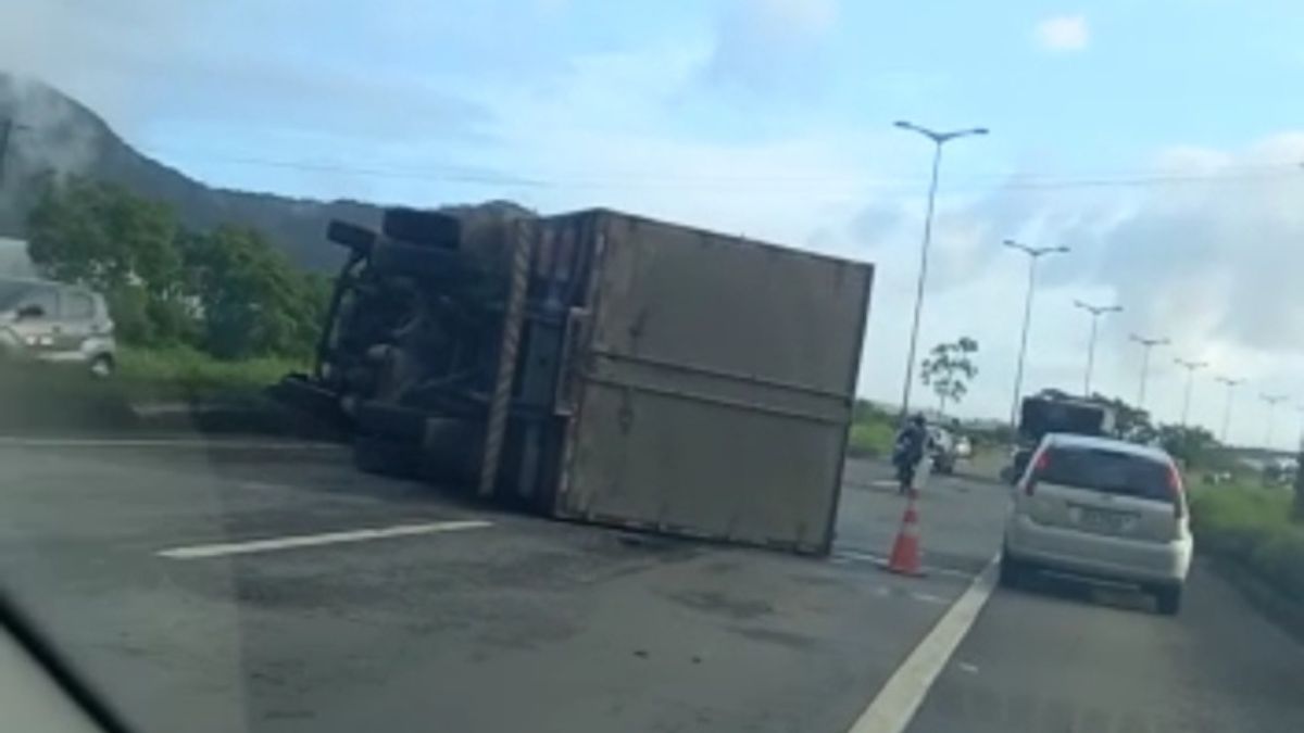 Um caminhão tombou, na manhã desta terça-feira (27), na Rodovia do Contorno, na Serra. Por conta do acidente, o motorista do veículo ficou ferido e precisou ser socorrido para um hospital da região. O trânsito no local ficou intenso, mas sem interdição total.