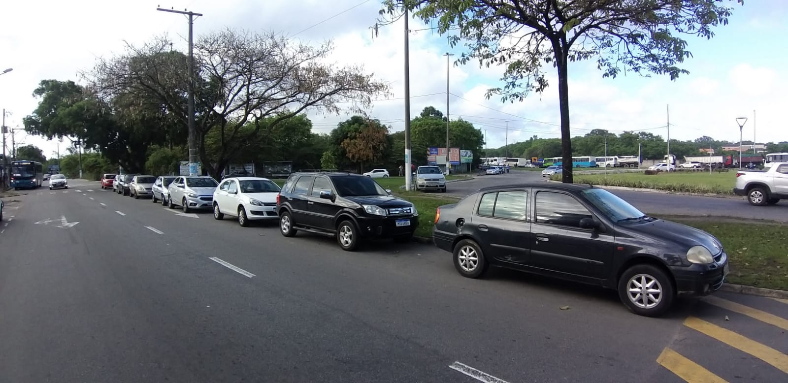 Veja algumas fotos do congestionamento causado pelos veículos que precisam entrar na empresa: