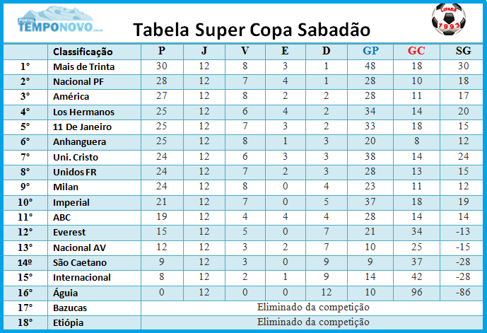 Com 12 rodadas já disputadas da Super Copa Sabadão, da Liga de Futebol Amador do Espírito Santo – Lifaes, a classificação dos times se mostra bem disputada e com pouca distância de ponto. Com a rodada que aconteceu no sábado o último invicto o Nacional PF perdeu e agora não tem mais nenhum time sem derrota.
