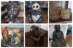Esculturas de buda, leão, tigre, porta-retrato, jarros, porta-joias, castiçais, corujas, elefantes, cisnes e ainda tapetes...