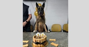 O cão policial Eudis, especialista em faro de armas e drogas da Polícia Militar do...