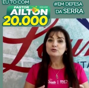 O vereador Pastor Ailton (PSC) recebeu uma declaração da deputada federal e cantora gospel Lauriete, que afirmou estar “orando pelo candidato, sempre comprometido em representar o povo da Serra na Câmara municipal”.