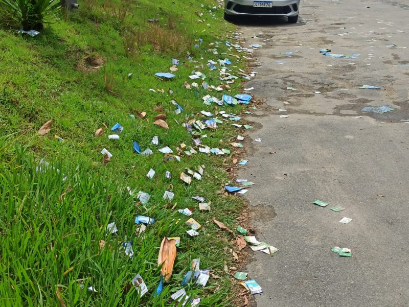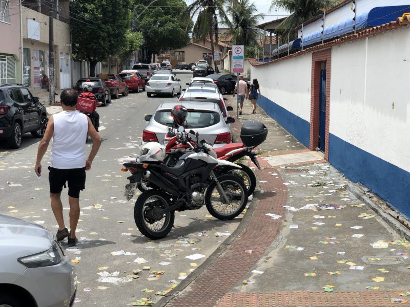 Uma prática ilegal, mas que é comum de se vê em todo ano de votação, seja das eleições municipais ou estaduais e nacionais. E neste domingo (15), a situação não foi diferente: ruas de diversos bairros da Serra foram tomadas de ‘santinhos’ (papéis de propaganda), que são espalhados, na maioria das vezes, pelos candidatos e seus apoiadores. O principal problema é que o ato que é considerado crime eleitoral, também pode trazer graves consequências para o meio ambiente.