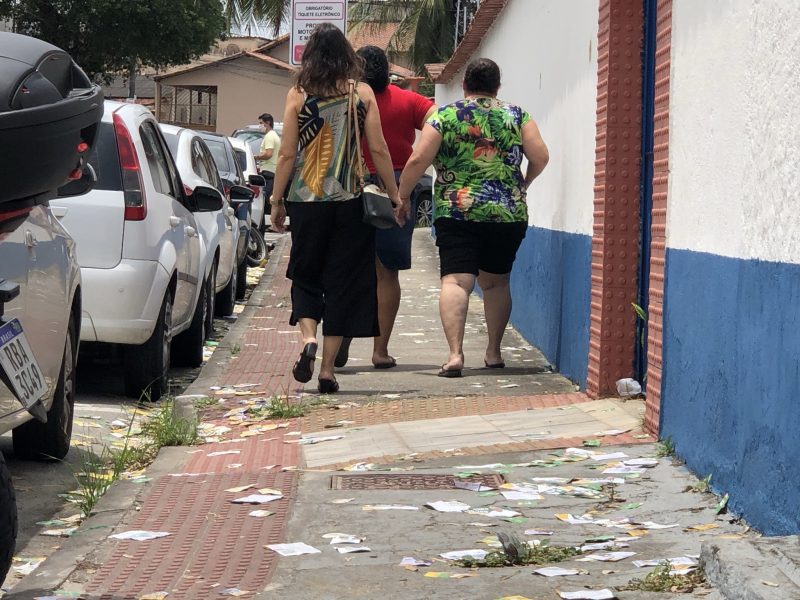 Eleitores de Serra Dourada I relataram também muita sujeira em frente à escola municipal Sônia Regina. “A campanha foi feita via internet sem necessidade. Estou reclamando, olha os políticos que irão cuidar de nossa cidade. Nojo, vergonha”, conta a leitora Lenir de Freitas, que fotografou a situação e enviou para a reportagem.