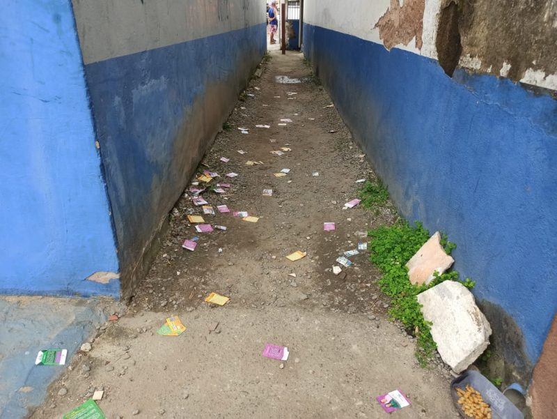 Em Feu Rosa, uma equipe do jornal constatou muito lixo pelas ruas do bairro. A rua Vitória Regia, via onde fica a Escola Marinete de Souza Lira, está lotada de santinhos e panfletos de diversos candidatos.