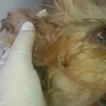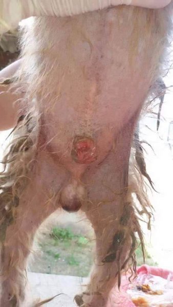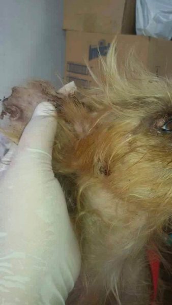 Ele foi ao veterinário no dia 08 de junho. “Até a veterinária chorou não acreditando em algo tão macabro”. Joaquim está com muita anemia e infecção grave. Herlen precisa de ajuda para prosseguir com o tratamento, qualquer valor é bem vindo.