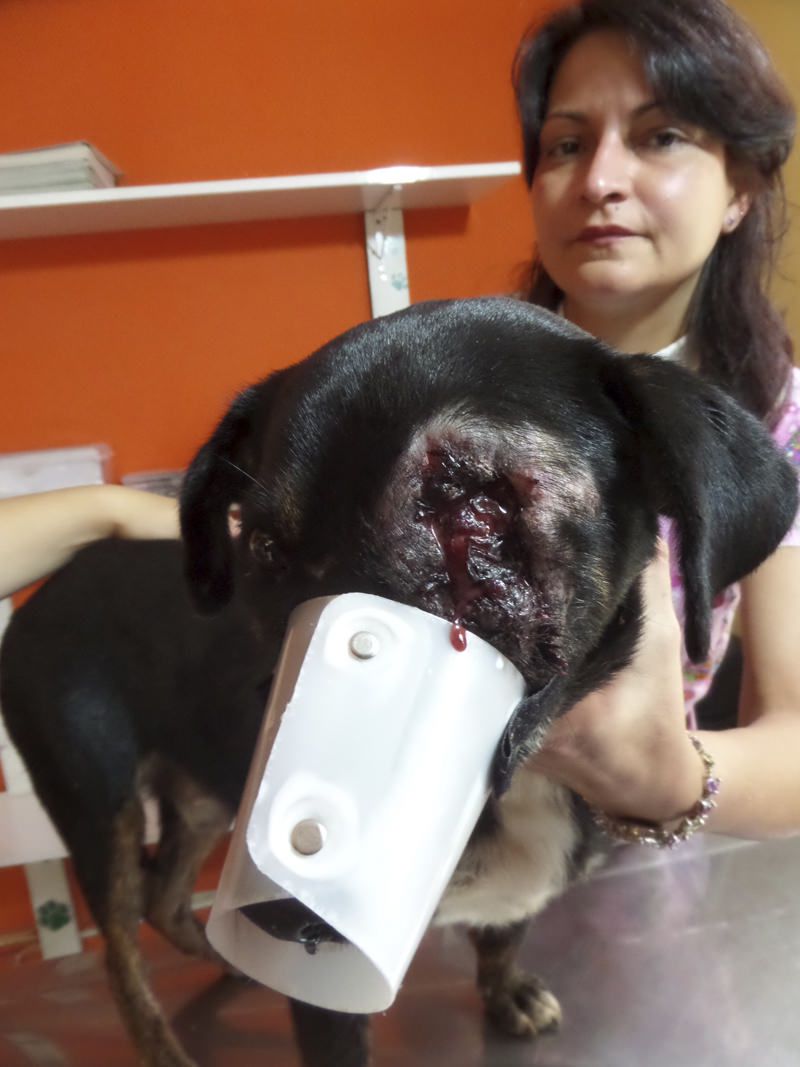 Maldade é pouco. É difícil encontrar um adjetivo para definir o que fizeram com um cachorro no bairro Laranjeiras Velha. O animal foi atingido em um dos olhos por um tiro de chumbinho.