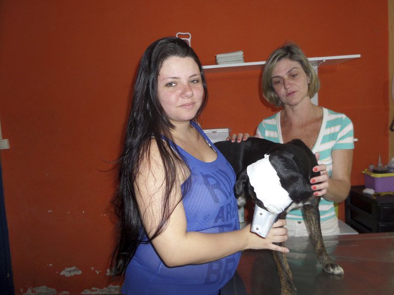 Alessandra e Rayane conseguiram resgatar o cachorro no domingo (05) pela manhã. Na segunda-feira (06), o animal foi levado para a veterinária Patrícia Oliveira, que prestou os primeiros socorros: limpeza do olho atingido e retirada de sangue para exame.