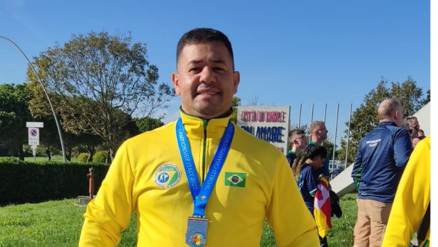 Nariz quebrado, desclassificação por sangramento, 33 horas sem dormir e uma prata com gosto de ouro. Essa foi a jornada do carateca Emérito Ferreira, de 45 anos e morador da Serra em seu terceiro mundial. A competição aconteceu da sexta (27) até este domingo (30), nas cidades italianas de Caorle e Veneza, e rendeu o vice-campeonato para o atleta na categoria de luta kumitê por equipes.