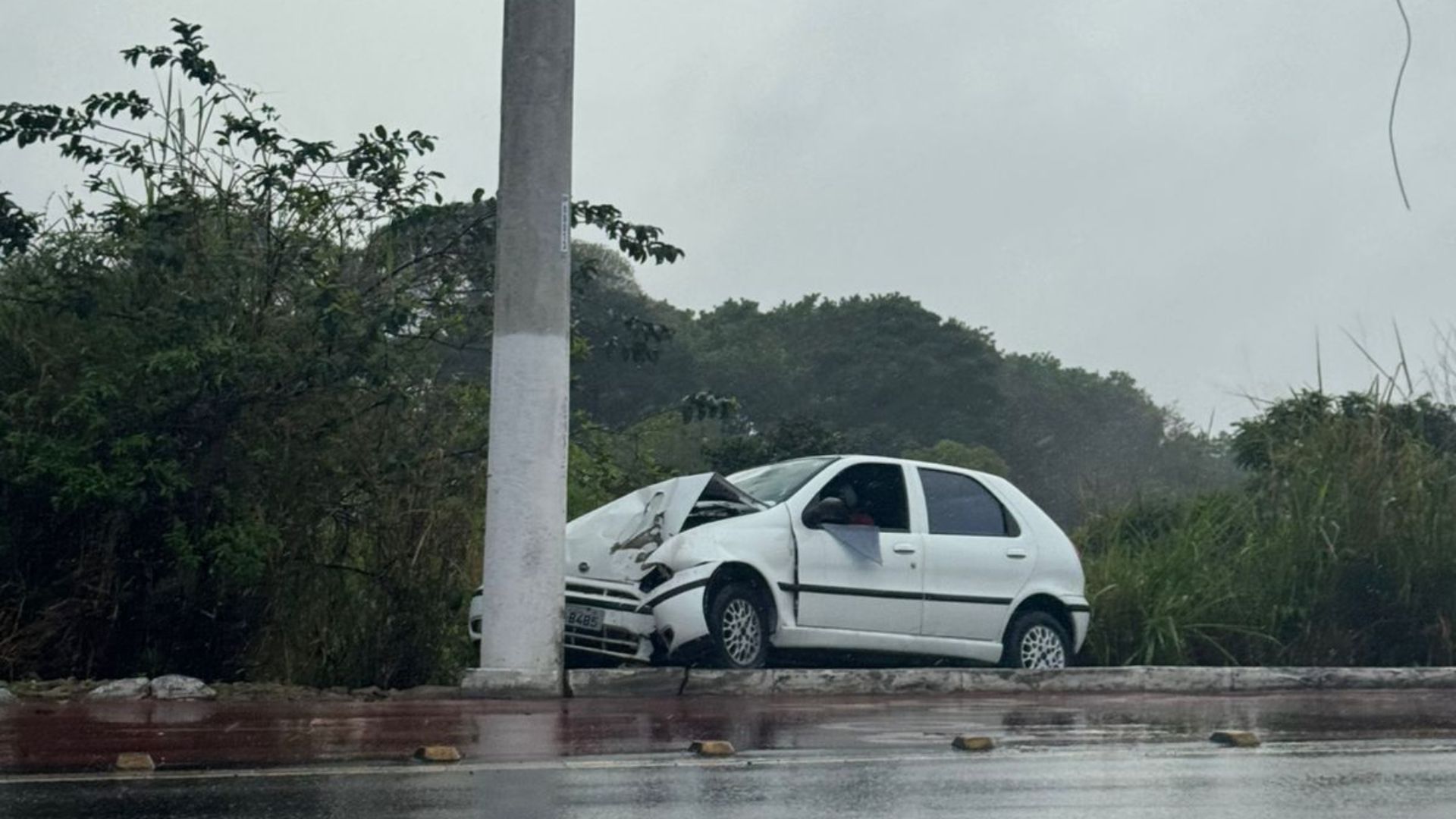 Um carro amanheceu com a frente cravada em um poste na Avenida Norte Sul, uma das principais da Serra. O caso aconteceu na madrugada deste sábado (20), na altura do bairro Barcelona.