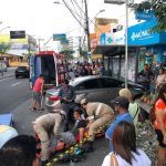 Após bater em uma moto, um carro avançou sobre a calçada onde fica um dos pontos de ônibus mais movimentados de Laranjeiras, na Av. Norte Sul, na Praça dos Correios, próximo ao Shopping Laranjeiras. O acidente aconteceu no final da tarde desta terça-feira (15).