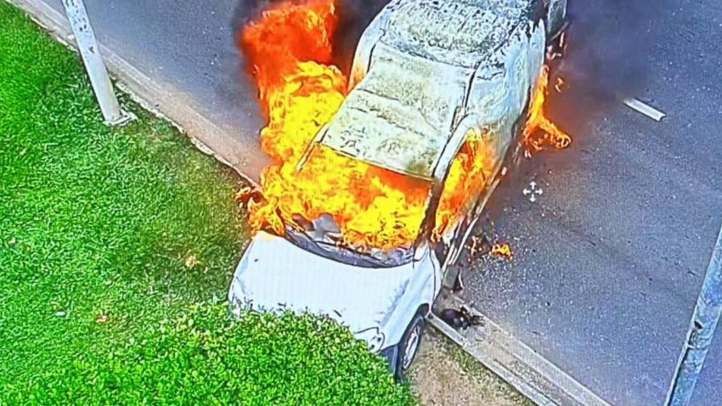Por volta das 17h, durante a remoção do veículo capotado por um guincho, o carro pegou fogo inesperadamente e chegou a se movimentar sozinho pela avenida, assustando quem estava no local.