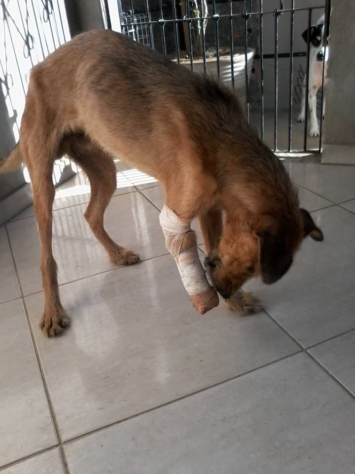 Lá, ela fez um curativo que poderia ficar por até 5 dias, possibilitando tempo para que minha dona procurasse ajuda, já que seria necessária uma nova amputação, pois a anterior não retirou por completo todo o membro e no estado que se encontrava poderia ocasionar uma Osteomielite (inflamação aguda/crônica do osso), sendo este o fato dos meus choros e gritos diários.