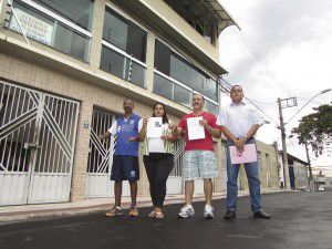 Moradores de Eurico Salles em frente a uma das casas que pode ter andar demolido. Foto: Fábio Barcelos