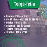 A agenda do Eliziário vai ter atividade de segunda a sexta-feira pela manhã, a tarde e à noite e também tem opção de horário aos sábados, dependendo da oficina escolhida. Tem possibilidades para todas as áreas desde esportivas a culturais e até artesanato e culinária.