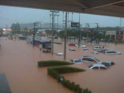 A situação da Serra é caótica no momento por causa da forte chuva que insiste em cair desde às 16hs da tarde de hoje(30). Nem a Avenida Central , coração comercial da cidade, escapou. Neste momento as lojas estão inundadas.