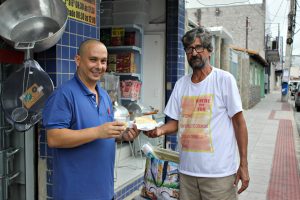 Pão com ovo, com mortadela e com queijo, além dos deliciosos café e chocolate cremoso....