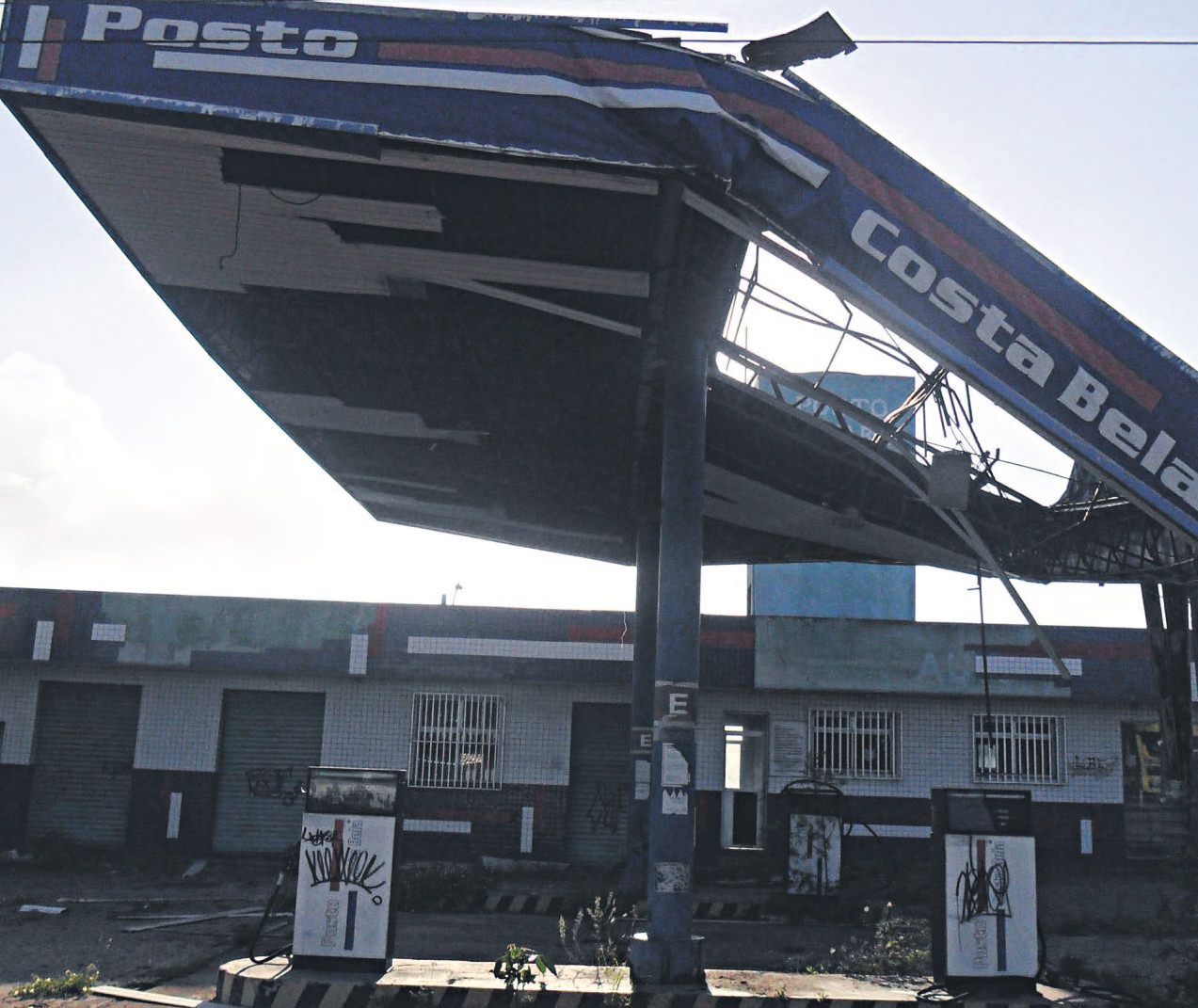 A cobertura de um posto de gasolina abandonado ameaça desabar. Fica na Rodovia ES 010 no bairro Costa Bela, em Jacaraípe.
