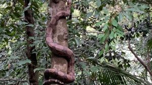 Uma cobra gigante – da espécie popularmente conhecida como jiboia – foi encontrada dentro da...