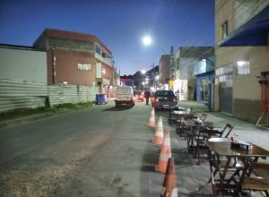 Sem iluminação pública há 16 dias, moradores e comerciantes da rua do Comércio, em Valparaíso,...