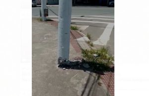 Um poste ameaça cair numa das vias mais movimentadas da Serra, a Norte Sul. O...