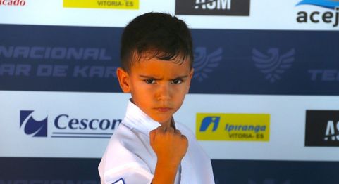 O último sábado (10) foi marcado por muito karatê na Serra, visto que o município sediou o maior campeonato da modalidade no Estado com a realização do Open Nacional de Karatê. E entre os vários atletas que marcaram presença na competição, o garoto Bernardo Curty, de apenas 5 anos, ganhou os holofotes ao conquistar a medalha de ouro na categoria sub-8 de kumite.