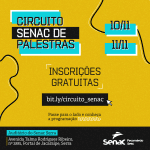 É importante lembrar que para participar é necessário realizar a inscrição no site do Senac. Para o evento da quinta (10), com a temática “O Jovem e o Mercado de Trabalho: Atendendo as Exigência Atuais”, é preciso ter no mínimo 14 anos e Ensino Fundamental I completo. A carga horária é de duas horas, sendo que a apresentação é ocorre das 19h as 21h. (Clique aqui para realizar a inscrição).
