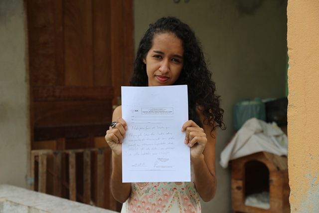 Jehniffer está no segundo ano do Ensino Médio, mas não está frequentando as aulas por conta das dores fortes na coluna.